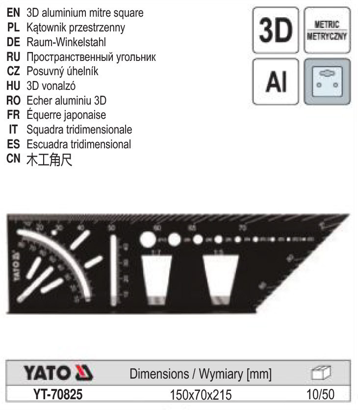 YATO YT-70825 3D derékszög Alumínium 150 x 70 x 215 mm