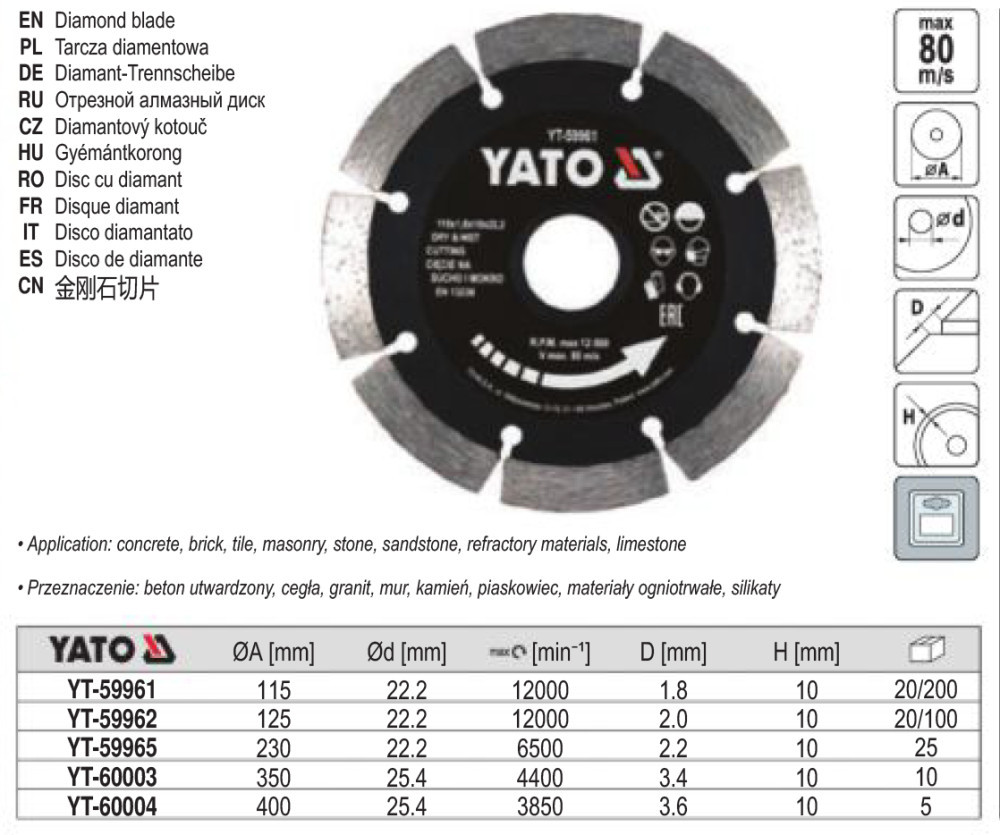 YATO YT-60004 Gyémánt vágókorong 400 x 3,6 x 10,0 x 25,4 mm szegmentált
