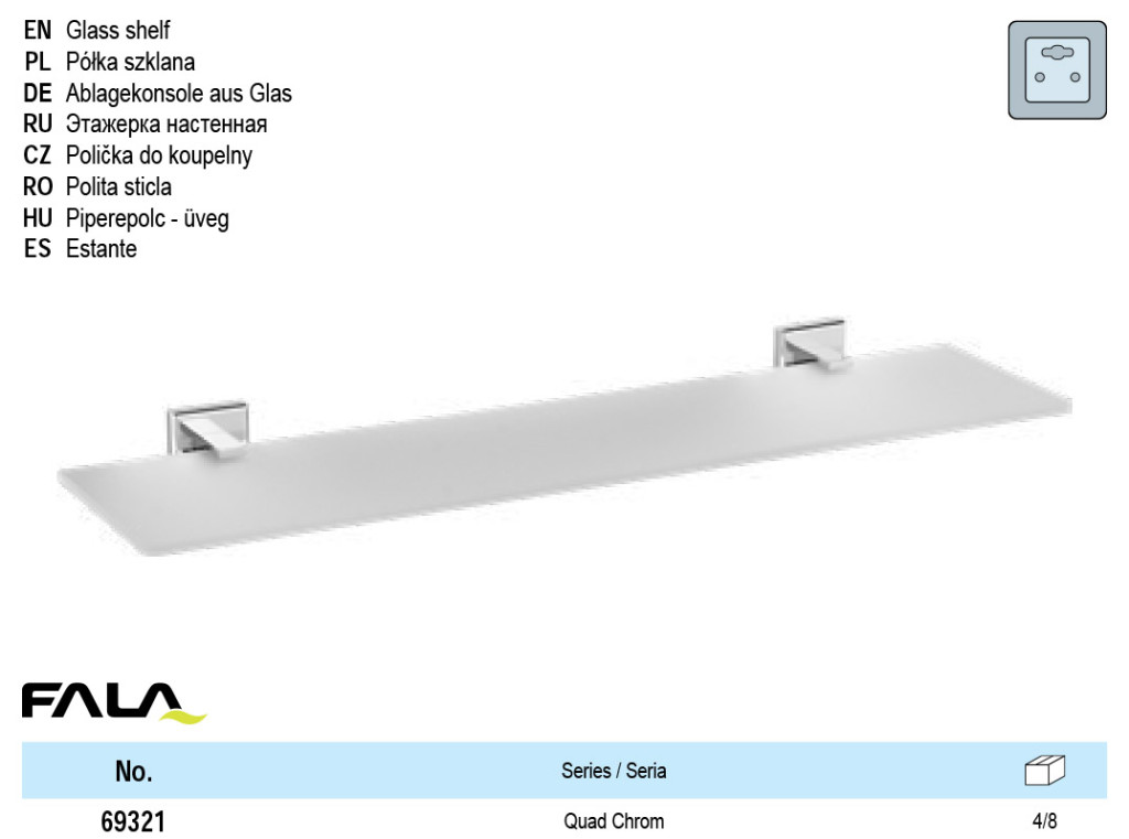 FALA69321 Fürdőszobai polc üveg 520x120x5mm Quad Chrome