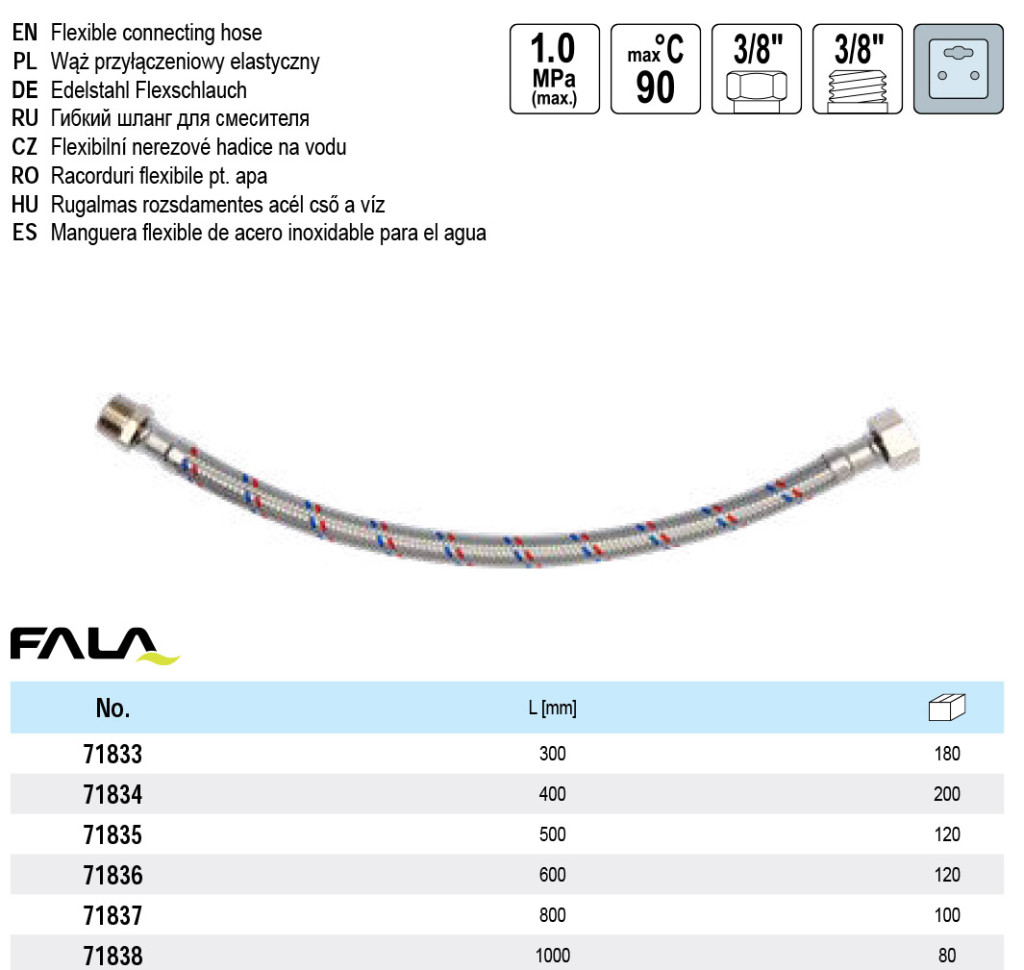 FALA71833 Flexibilis bekötőcső 3/8" x 3/8" 300 mm belső-külső