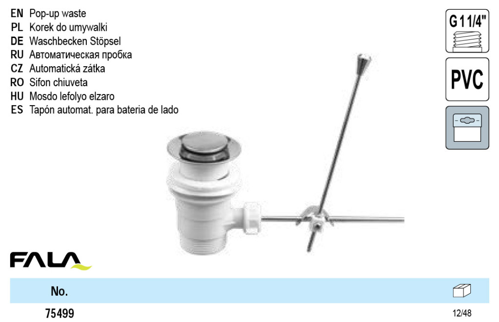 FALA75499 Mosdó lefolyó műanyag automata leeresztővel