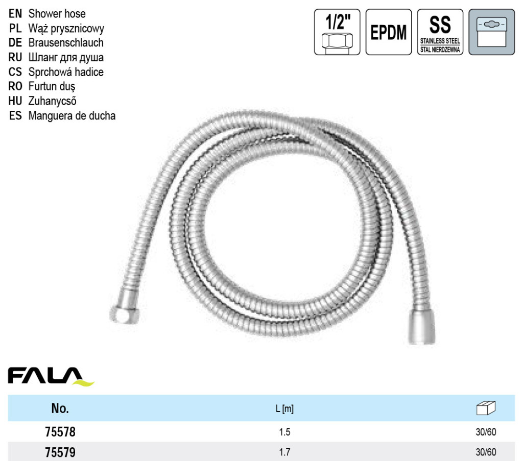 FALA75579 Zuhanycső dupla rétegű 1,7 m