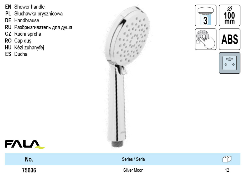 SHOWER HANDLE SILVER MOON 100MM 3FUNCT.