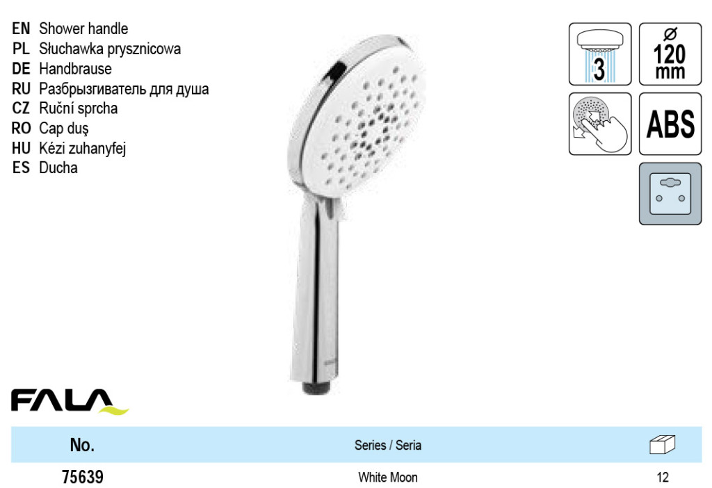 SHOWER HANDLE WHITE MOON 120MM 3FUNCT.