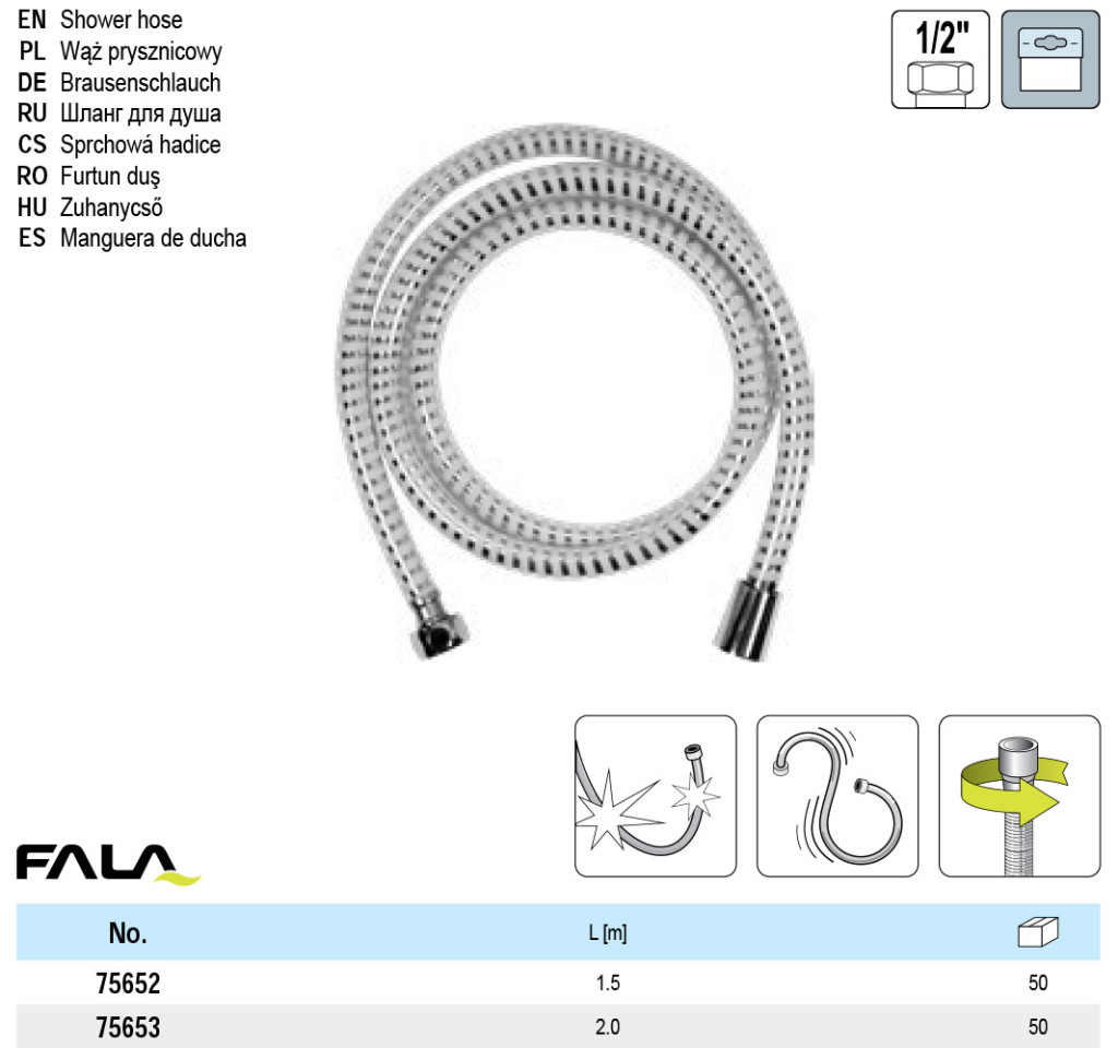 SHOWER HOSE 2.0M PVC CHROME-WHITE