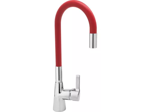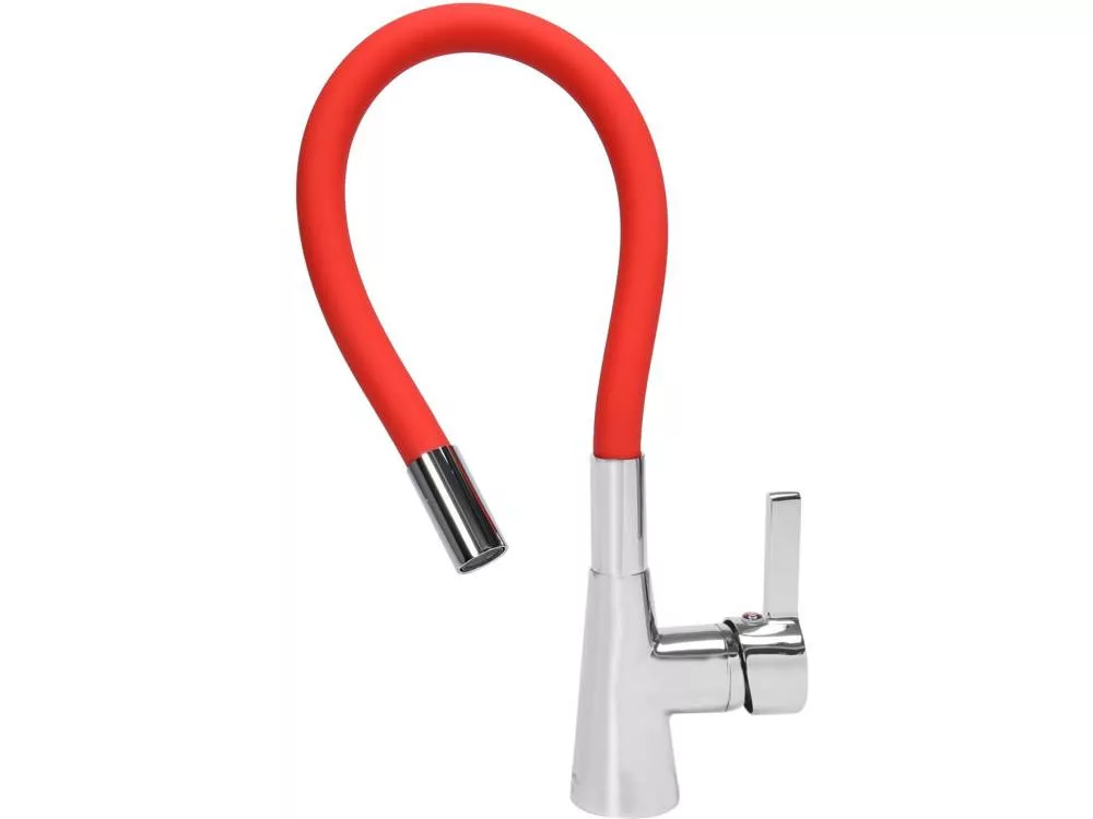 KITCHEN FAUCET WITH RED FLEXIBLE SPOUT