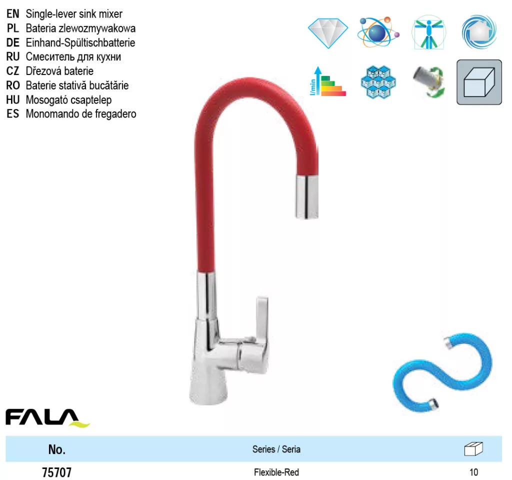 FALA75707 Mosogató csaptelep piros flexibilis csővel + tartozékok