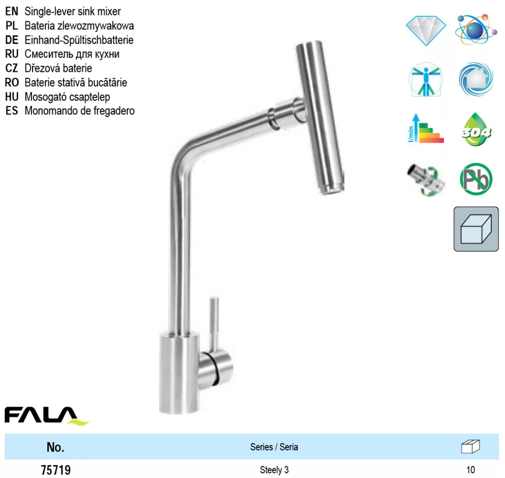 FALA75719 Mosogató csaptelep + tartozékok inox Steely3