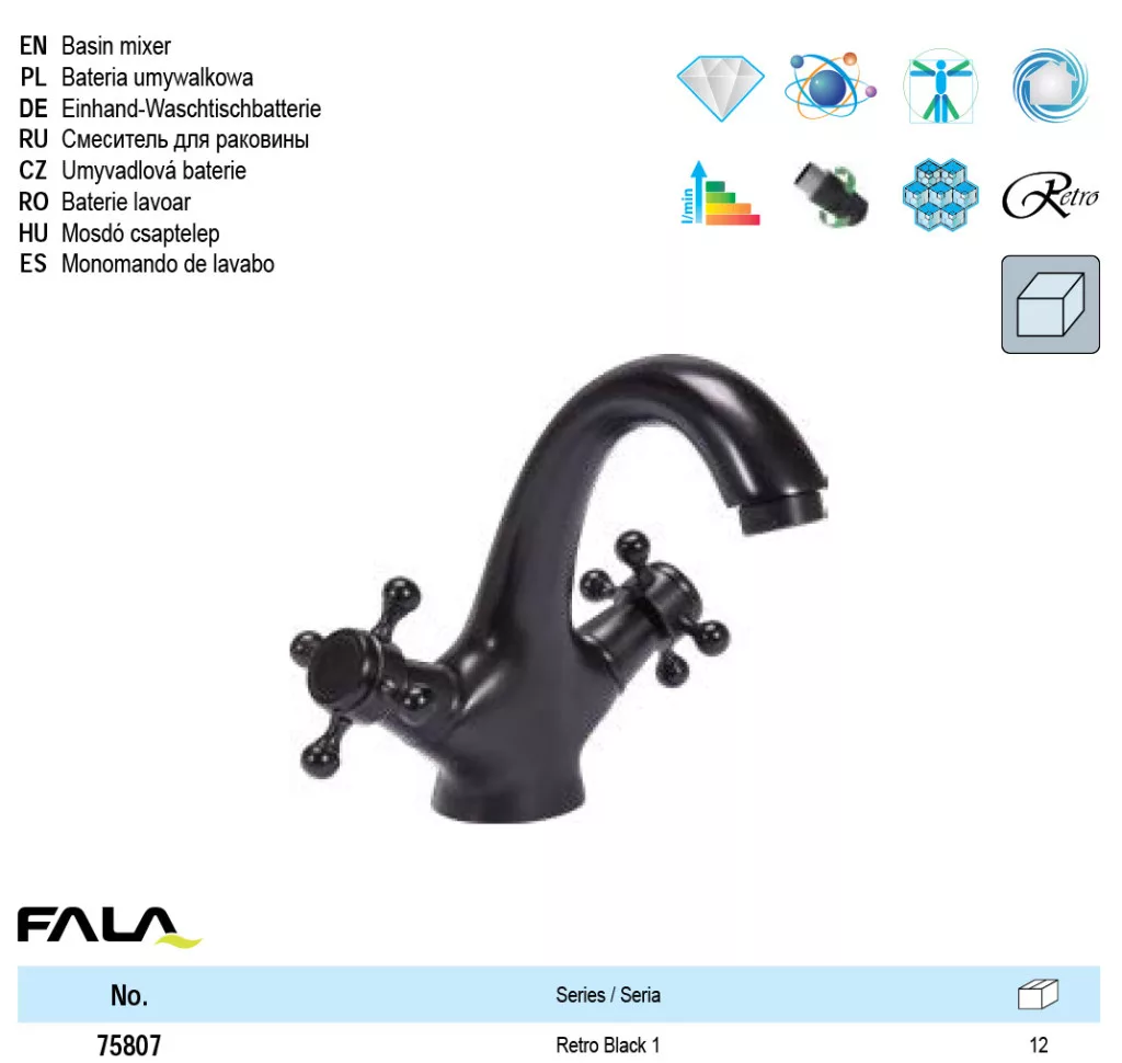 FALA75807 Mosdó csaptelep + tartozékok Retro Black 1