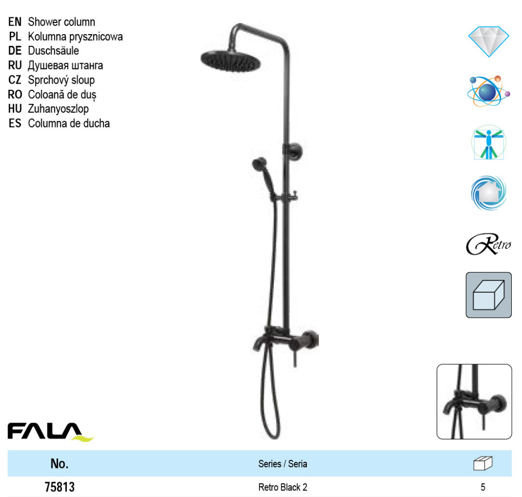 FALA75813 Zuhanyoszlop Retro Black 2