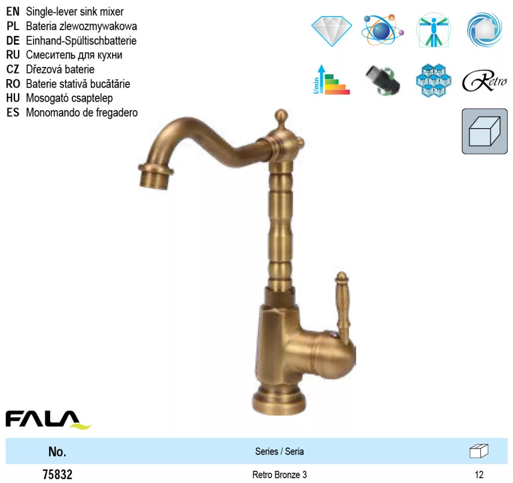 FALA75832 Mosogató csaptelep + tartozékok Retro Bronze 3