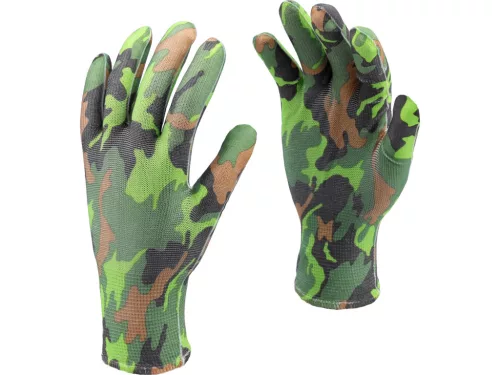 FLO 74113 Kertészkesztyű Zöld Terepmintával 8-As