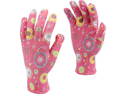 FLO 74117 Kertészkesztyű Rózsaszín Mintákkal 8-As