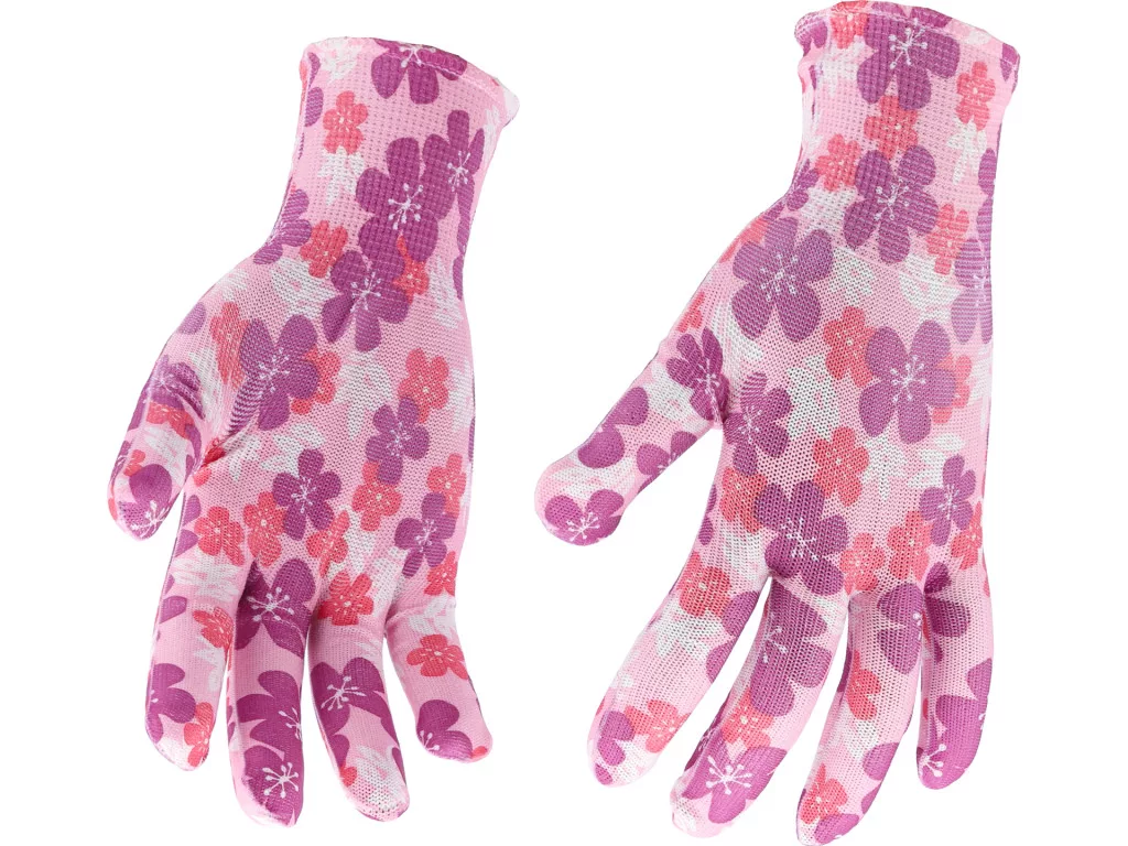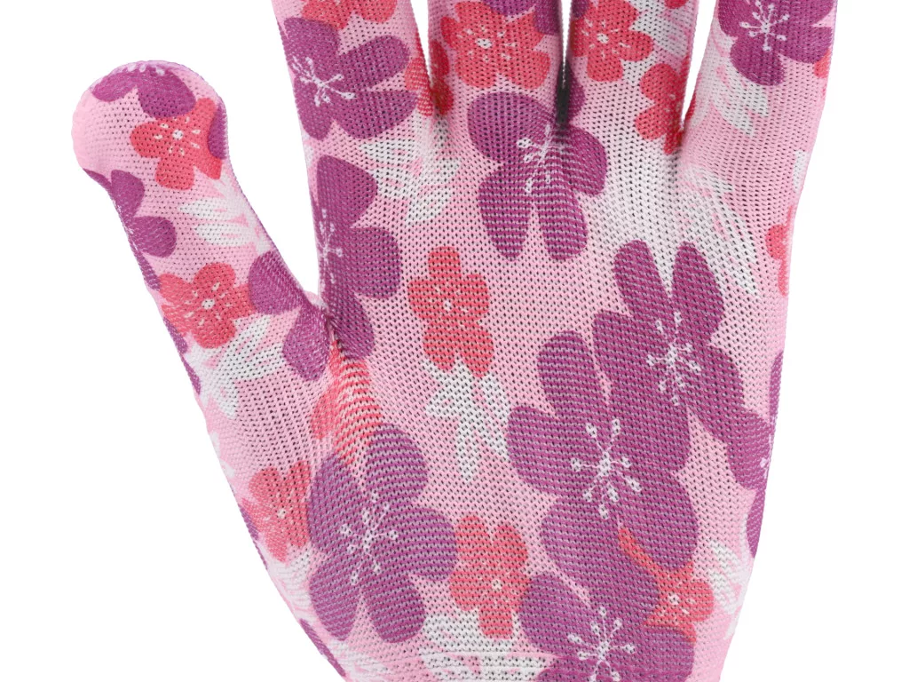 FLO 74121 Kertészkesztyű Rózsaszín Virágmintával 8-As