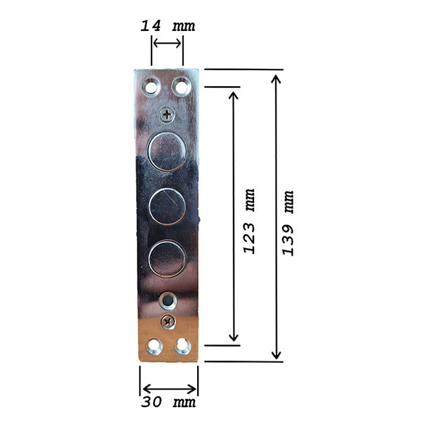 Acél biztonsági ajtóhoz való felsőzár, mely 30 mm-es előlappal rendelkezik. A zárból nincs jobbos vagy balos változat, működtetése zárbetéttel történik.