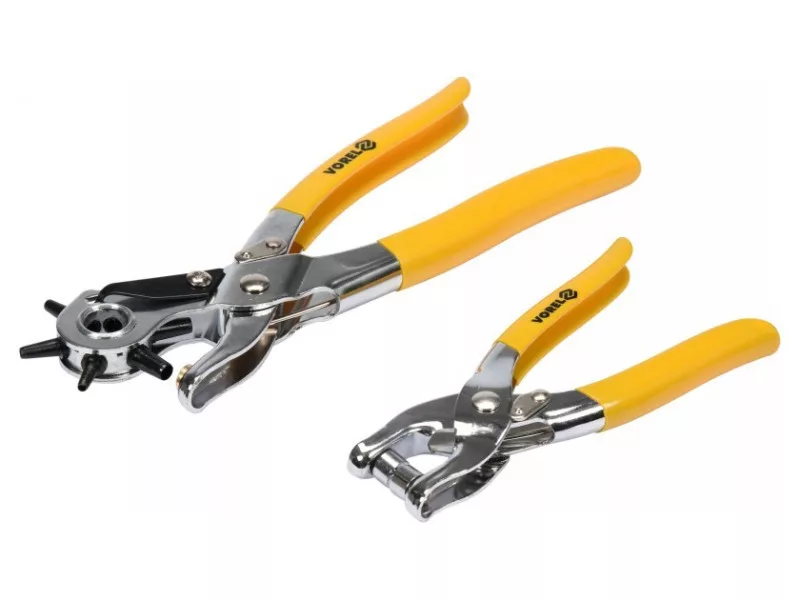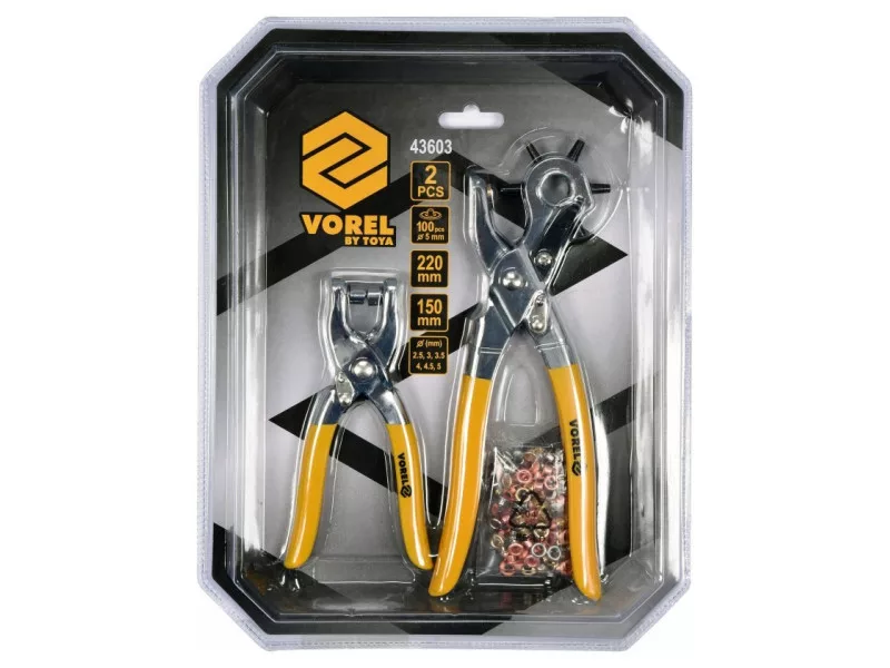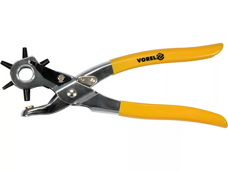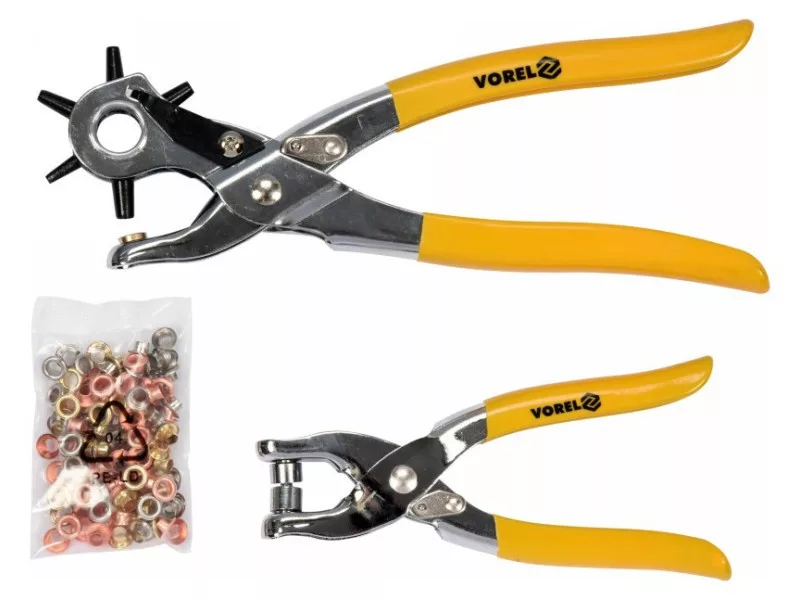VOREL Bőrlyukasztó fogó revolveres és bőrszegecselő + 100 db szegecs