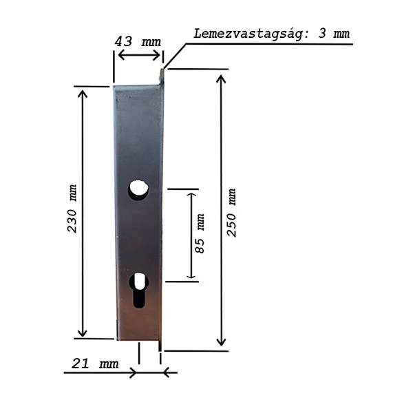 Kezeletlen felületű vastok, amely Euro Elzett 3389-es és 3389B típusú portálzárhoz javasolt. 24,5 cm magassággal és 4 cm szélességgel rendelkezik.