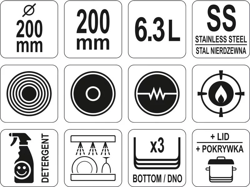 YATO YG-00002 GASTRO Fazék fedővel 6,3 liter 200 x 200 mm inox