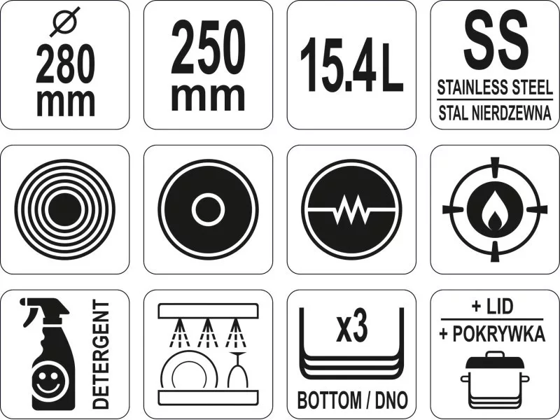YATO YG-00004 GASTRO Fazék fedővel 15,4 liter 280 x 250 mm inox