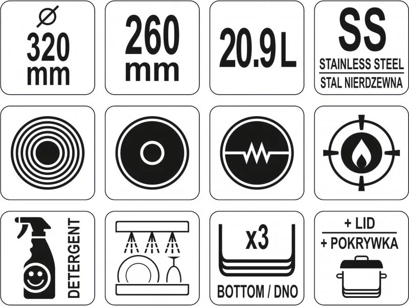 YATO YG-00005 GASTRO Fazék fedővel 20,9 liter 320 x 260 mm inox