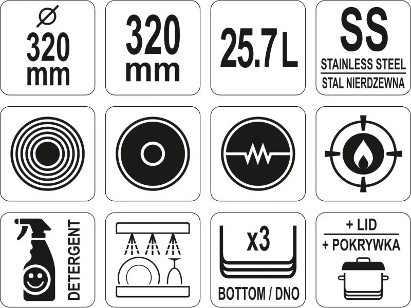 YATO YG-00006 GASTRO Fazék fedővel 25,7 liter 320 x 320 mm inox