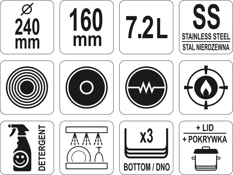 YATO YG-00023 GASTRO Lábas fedővel 7,2 liter 240 x 160 mm inox