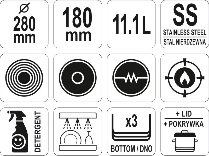 YATO YG-00024 GASTRO Lábas fedővel 11,1 liter 280 x 180 mm inox