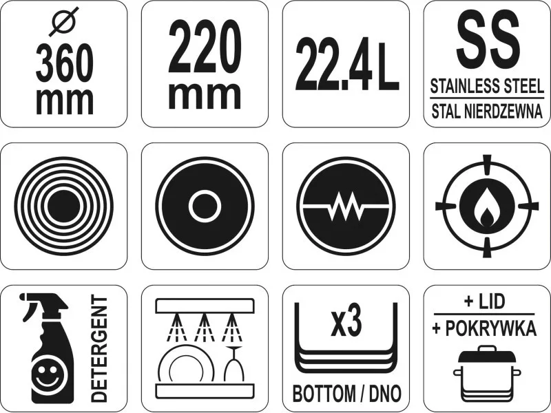 YATO YG-00026 GASTRO Lábas fedővel 22,4 liter 360 x 220 mm inox