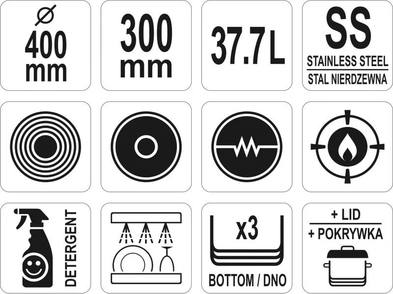 YATO YG-00027 GASTRO Lábas fedővel 37,7 liter 400 x 300 mm inox