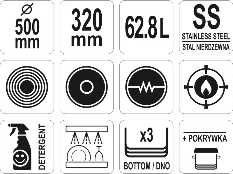 YATO YG-00029 GASTRO Lábas fedővel 62,8 liter 500 x 320 mm inox