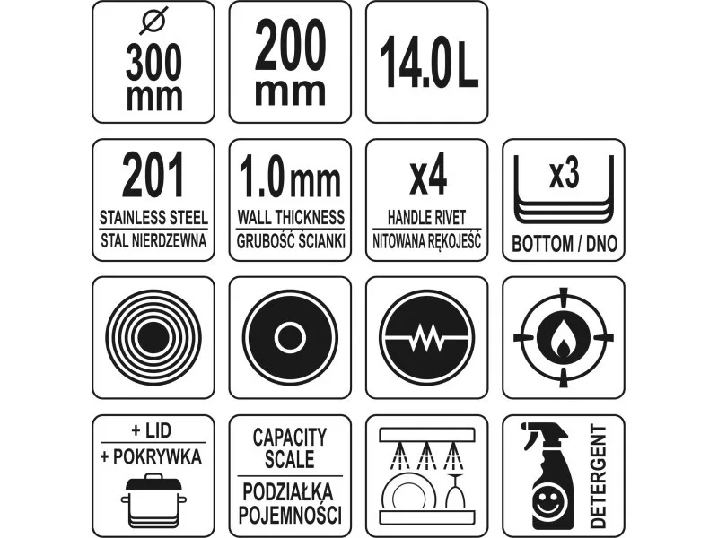YATO YG-00047 GASTRO Fazék fedővel 14 liter 300 x 200 mm inox
