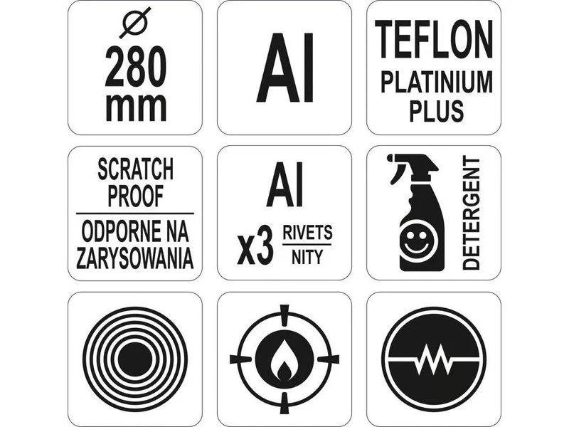 YATO YG-00161 GASTRO Serpenyő teflon bevonattal indukciós 280 mm Alumínium