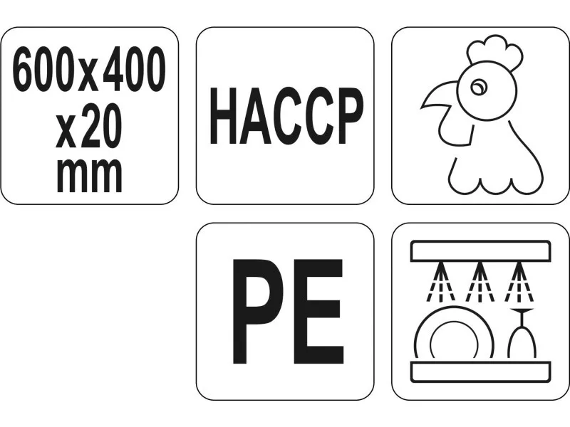 YATO YG-02182 GASTRO Vágódeszka 600 x 400 x 20 mm PE sárga