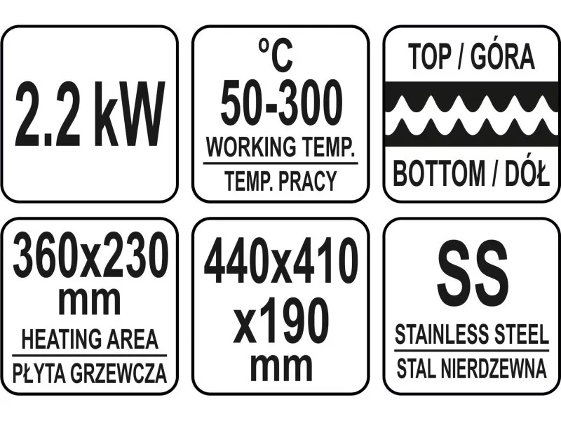 YATO YG-04557 GASTRO Kontaktgrill 440 mm 2200 W bordázott sütőlap