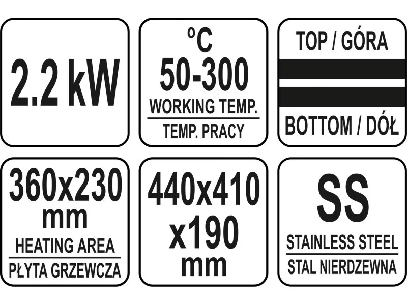 YATO YG-04558 GASTRO Kontaktgrill 440 mm 2200 W lapos sütőlap