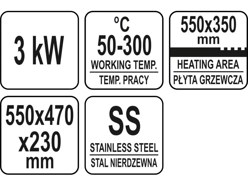 YATO YG-04586 GASTRO Grill 550 mm 3000 W lapos és bordázott sütőlap