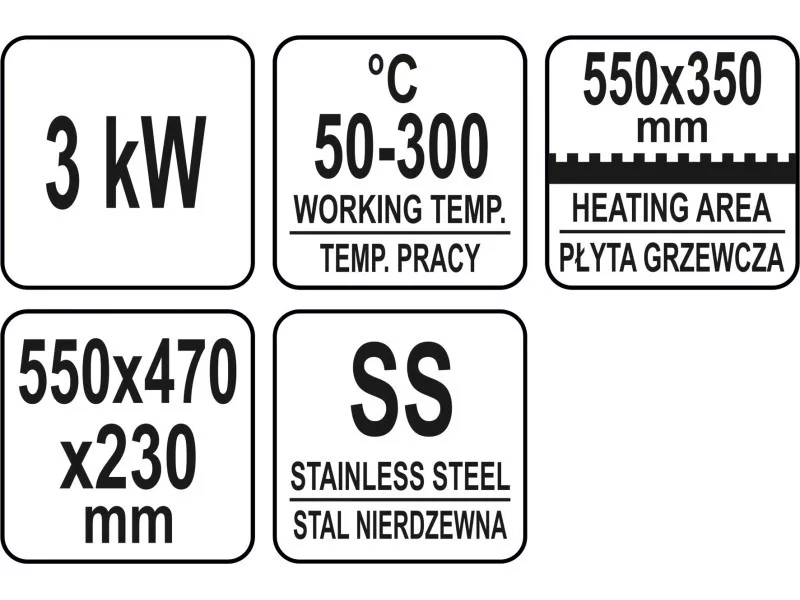YATO YG-04587 GASTRO Grill 550 mm 3000 W bordázott sütőlap