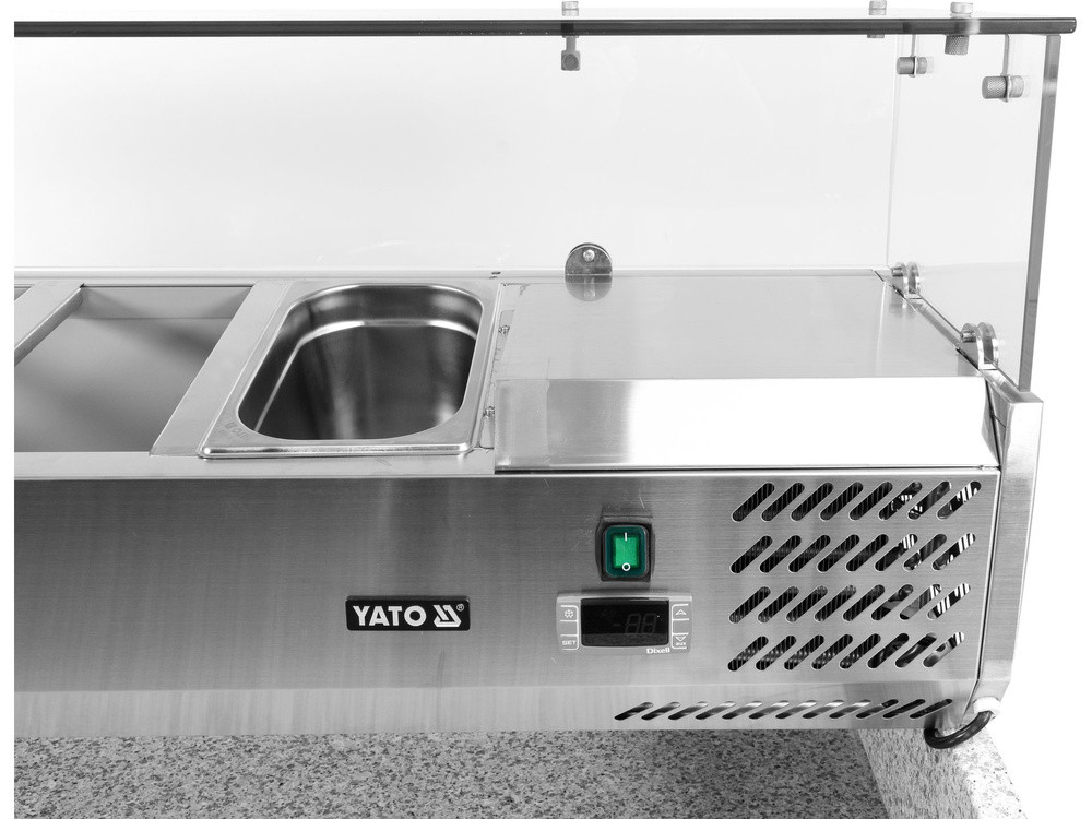 YATO YG-05305 Háromajtós rozsdamentes bővített pizzaasztal gránit munkapúlttal 700-as széria 368L 1400x700x1020 (asztal), 1400x335x435 (bővítmény) mm