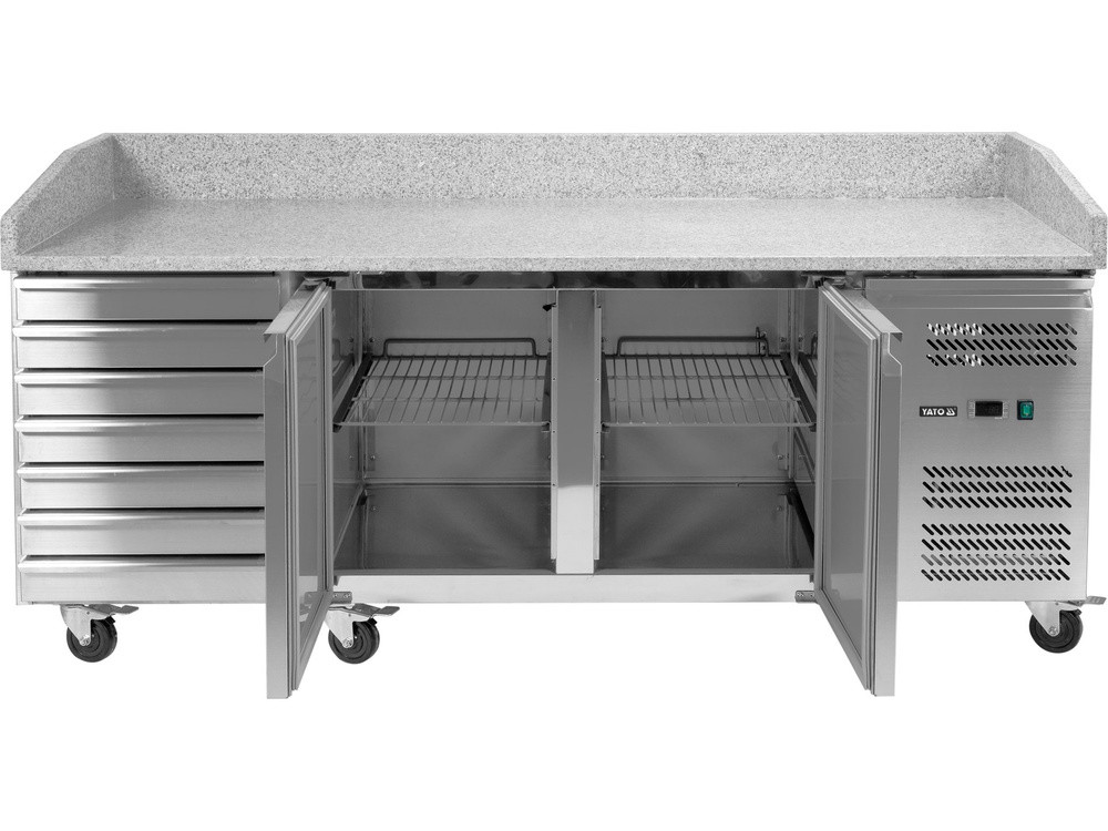 YATO YG-05310 Kétajtós hétfiókos bővíthető rozsdamentes hűtött pizzaasztal 580L 2025x800x1000mm