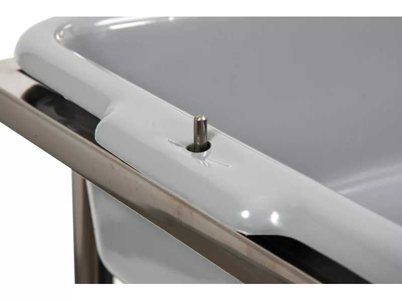 rozsdamentes acél (keret), PP (tartályok)