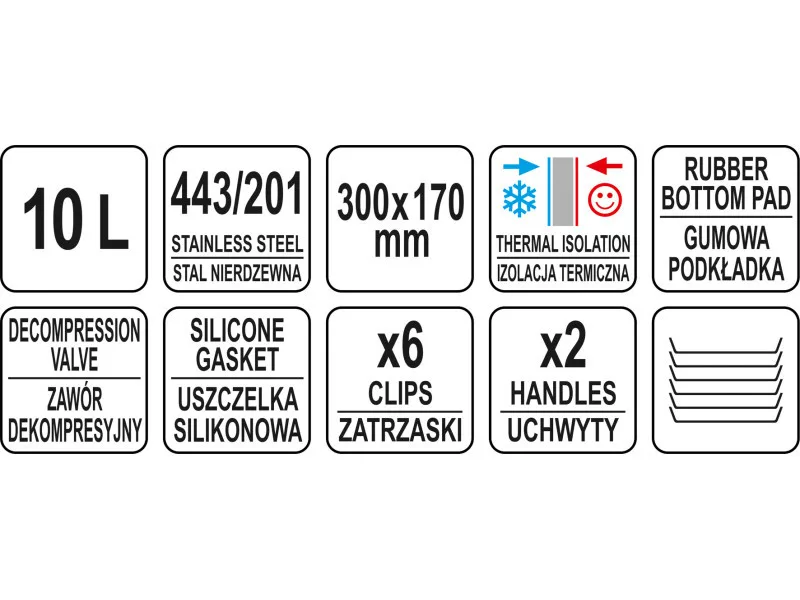 YATO YG-09200 GASTRO Ételszállító badella dupla falú 10 liter inox