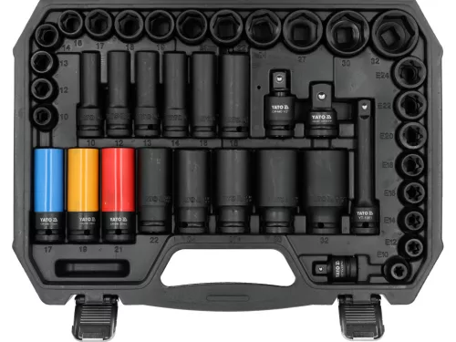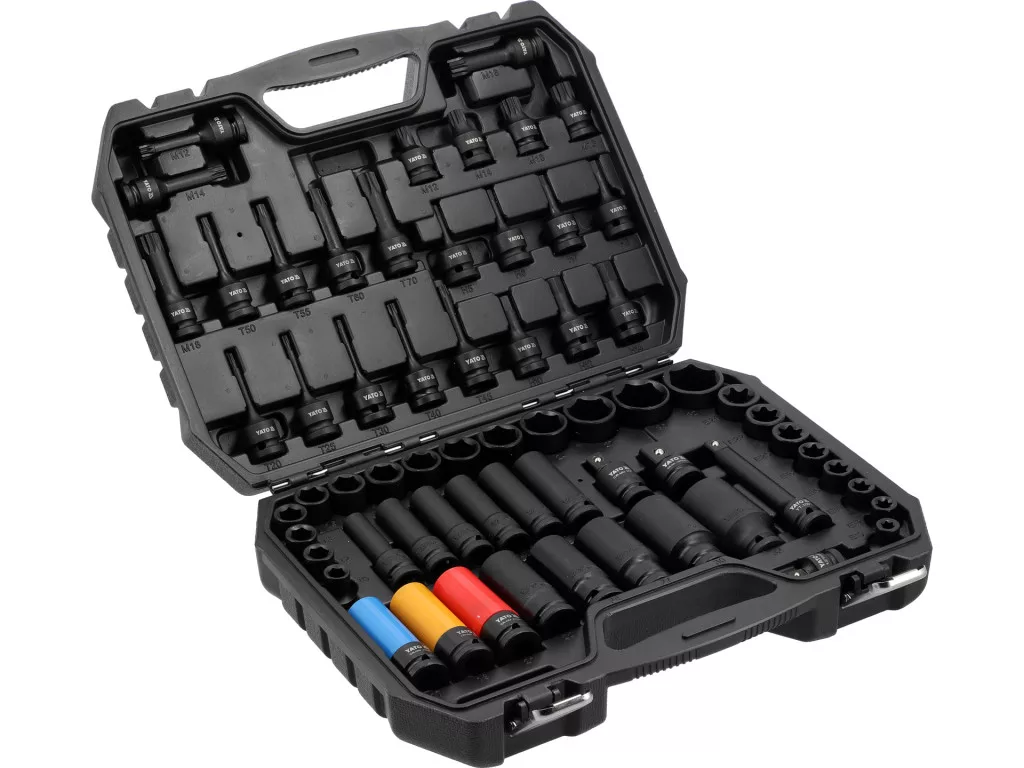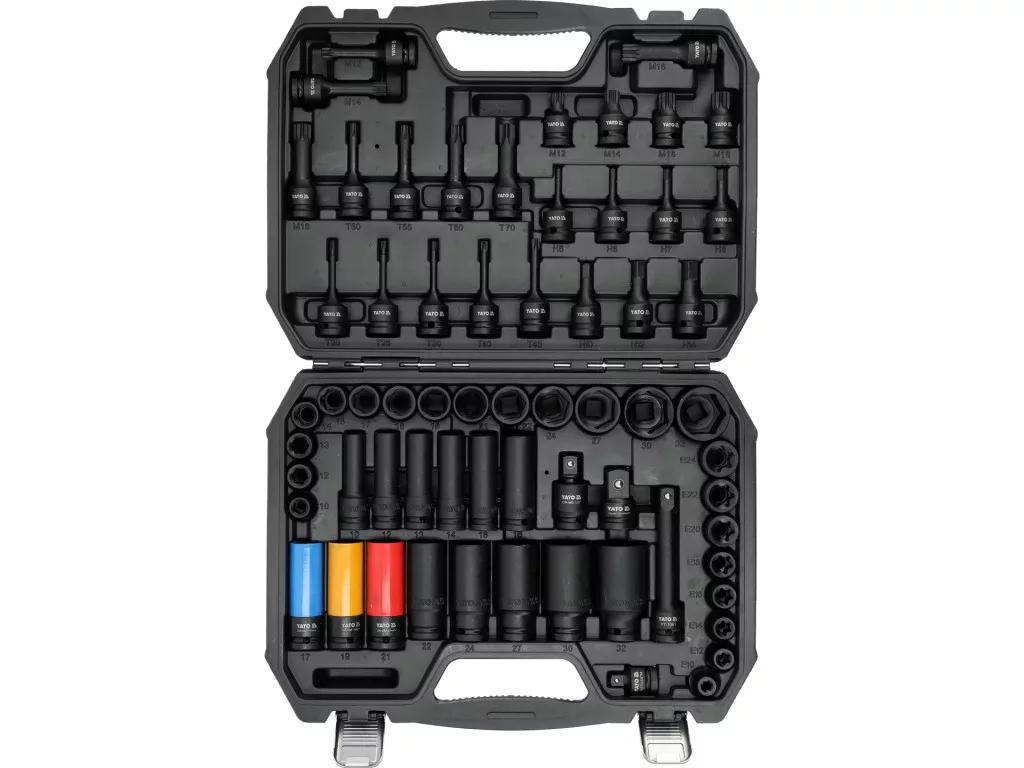 YATO YT-10260 Gépi dugókulcs készlet 64 részes rövid és hosszú dugók, külső és belső torx, SPLine és imbusz, alufelnihez dugó fejekkel 1/2 col