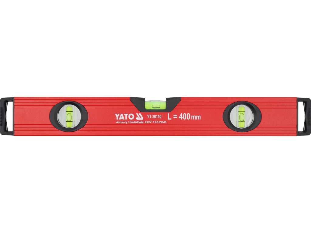 YATO YT-30110 Alumínium vízmérték 400mm 3 libellás bordázott szerkezetű merev profillal