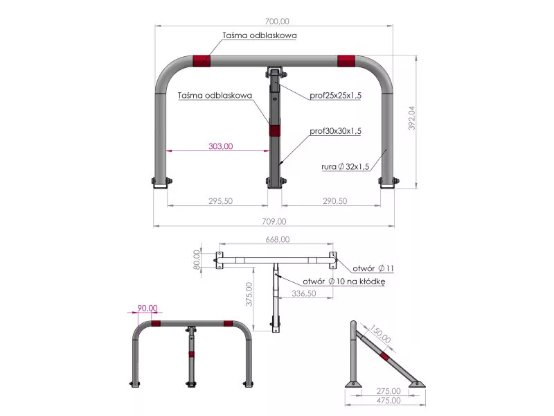 3 talplemzzel, talpanként 2 csavarral (csavarok / dűbelek nem tartozékai)