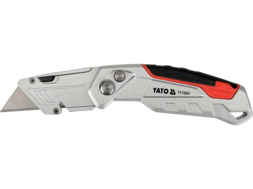 YATO YT-75203 Behajtható tarpézpengés kés övvágó / dobozbontó funkcióval +3 db pótpengével