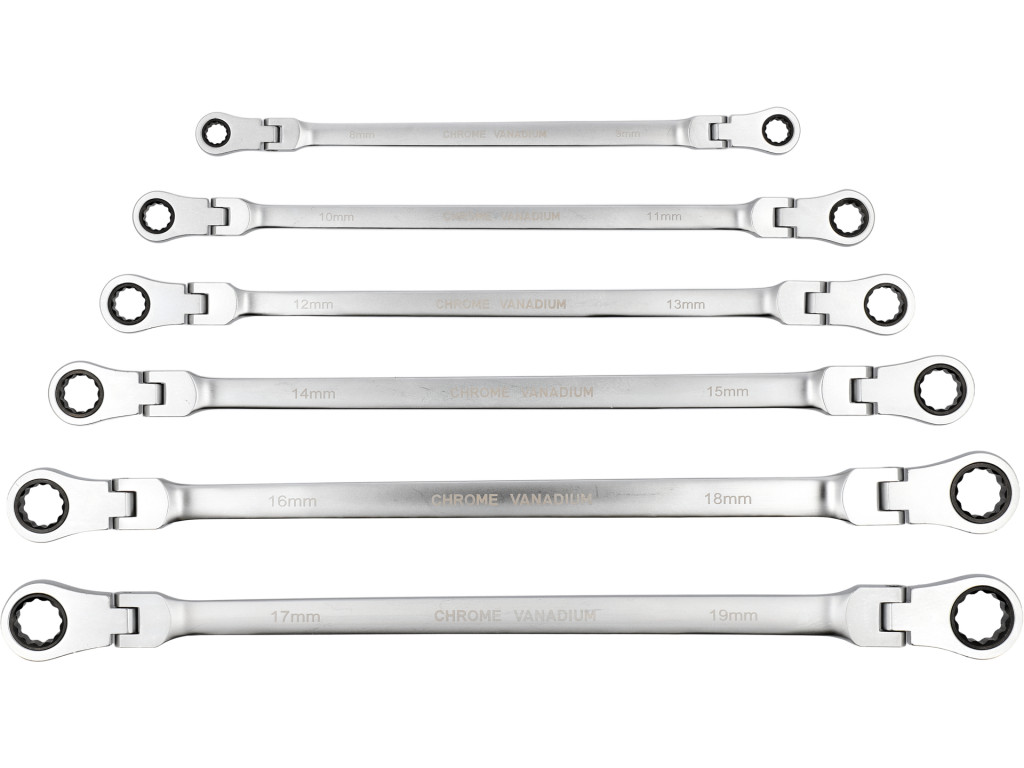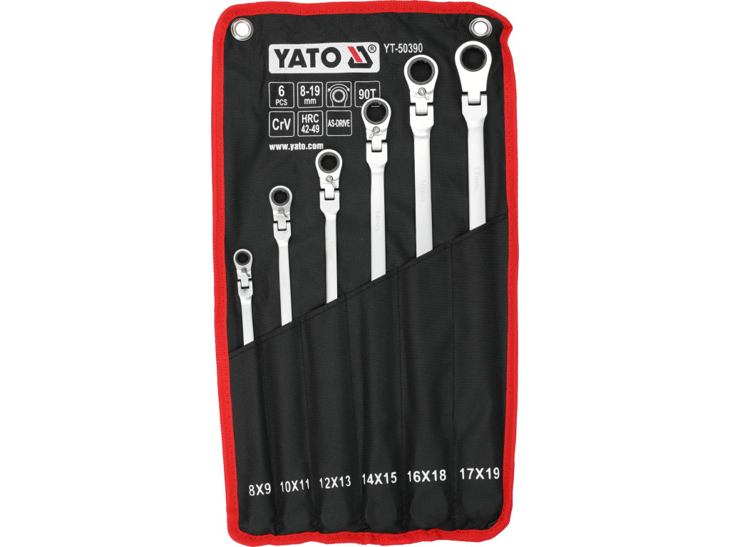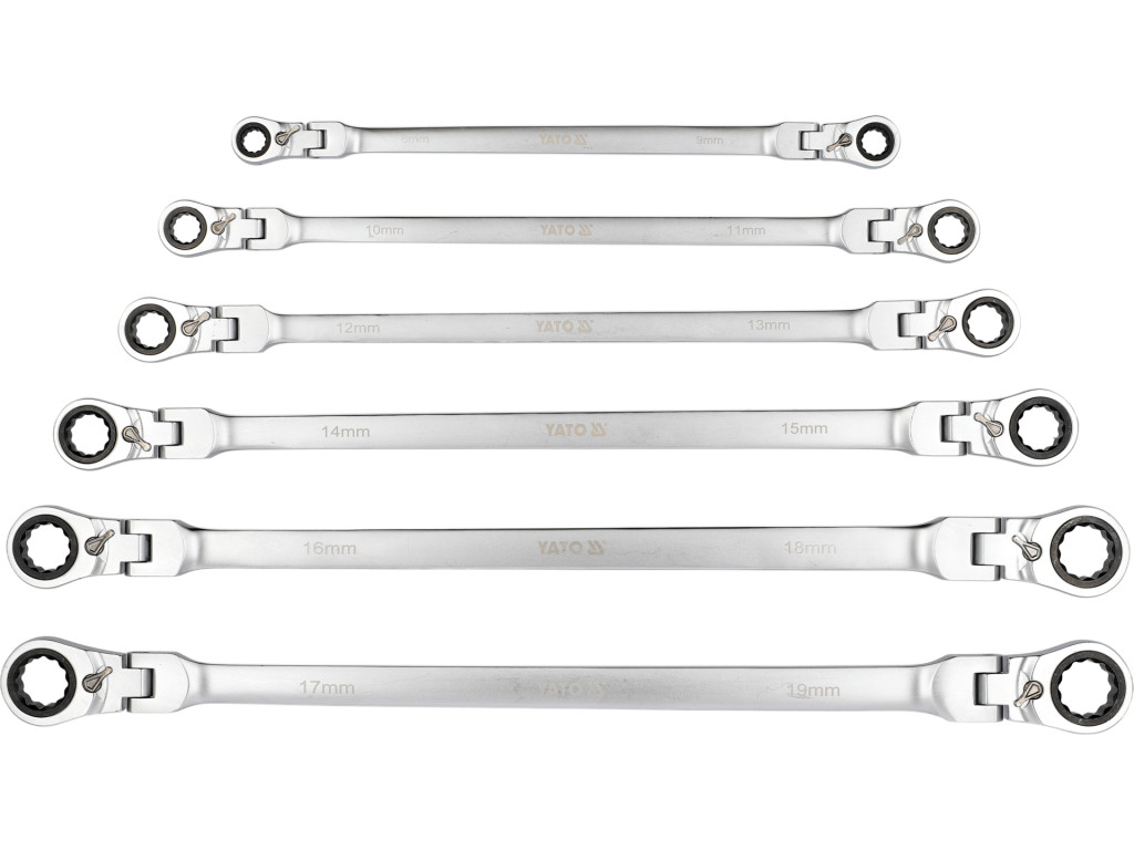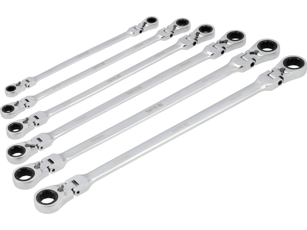 Yato YT-50390 Extra hosszú racsnis csuklós irányváltós csillagkulcs készlet 6 részes 8-19mm-ig
