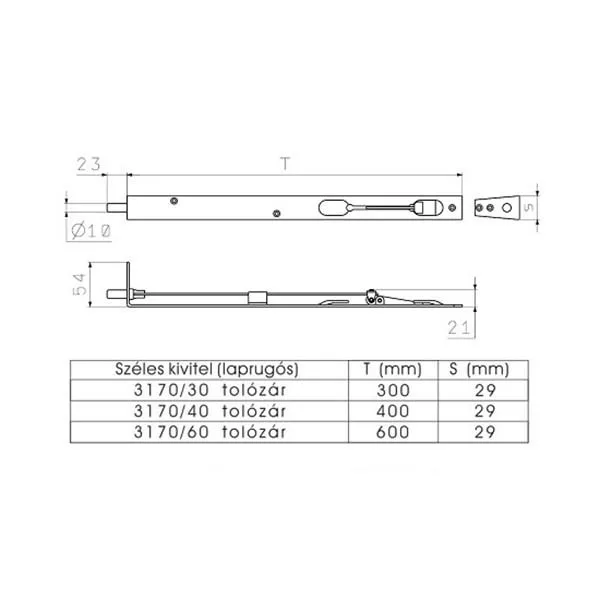 Biztonsági tolózár fa duplaajtóhoz 300-as méretben, széles (laprugós) kivitelben. A felszereléshez szükséges csavarok NEM TARTOZÉKAI.