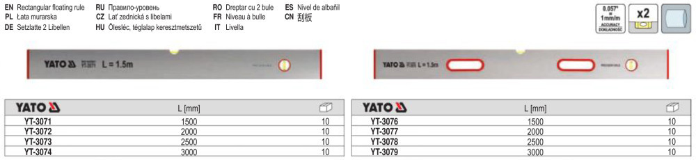 YATO YT-3073 Ölesléc 2 libella 2500 mm